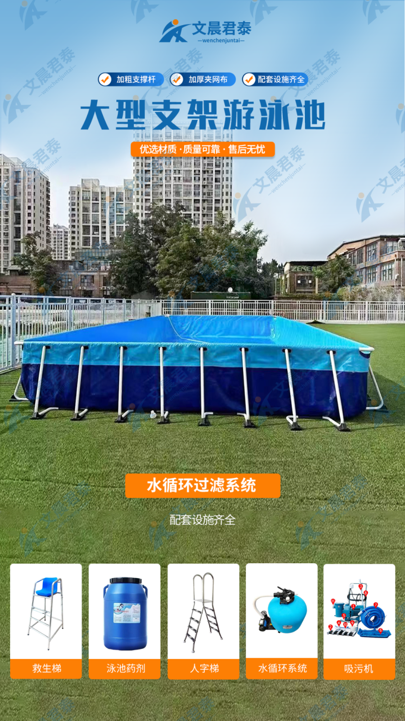 快速搭建的專業(yè)級支架泳池,采用“雙層加厚PVC夾網(wǎng)強化材質(zhì)”,抗撕裂性能提升150%。提供多種尺寸選擇(最大可達10m×5m),適合健身房戶外區(qū)、別墅庭院及學校使用。防滑底紋設計有效預防水下意外,搭配一體化過濾系統(tǒng),保持水質(zhì)長效清澈。