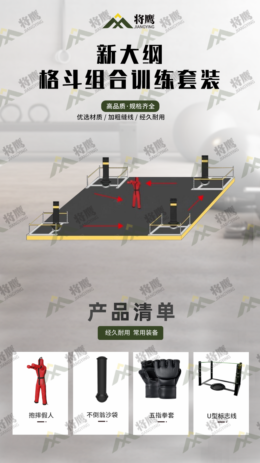 這套訓練組合小編稱之為武術(shù)館、警校培訓的“革命性工具”!為學員掌握格斗中拳、腿、肘、膝、摔、地面控制等基本技術(shù),提高戰(zhàn)場搏擊能力,以及培養(yǎng)過硬的心理素質(zhì)和敢打敢拼、堅韌不拔、勇敢頑強的戰(zhàn)斗意志。