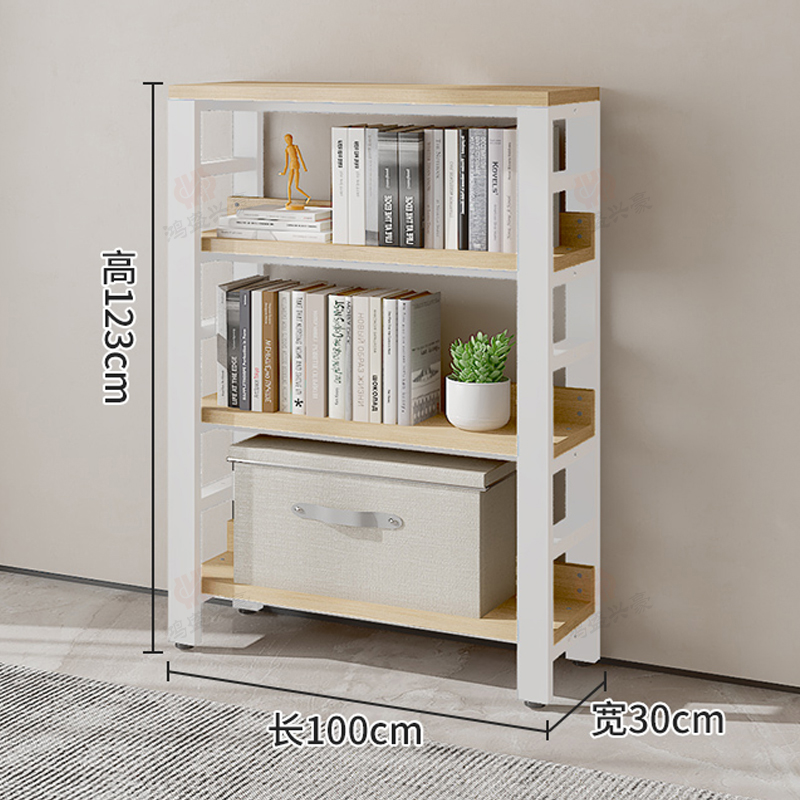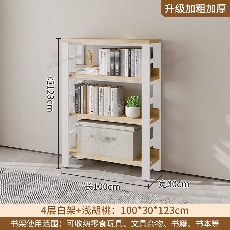 簡(jiǎn)易書(shū)架一體靠墻置物架落地式書(shū)柜多功能書(shū)架升級(jí)4層100(白架淺胡桃)
