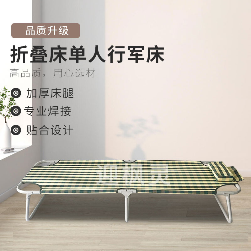 折疊床單人戶外行軍床醫(yī)院陪護(hù)床辦公室便攜午睡床-小網(wǎng)格黃綠格