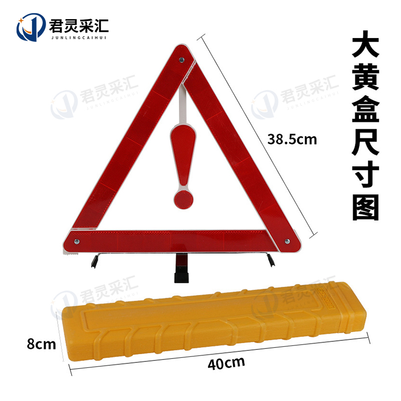 君靈采匯汽車三角架警示牌交通警示反光標志車載可折疊三腳架 大黃盒